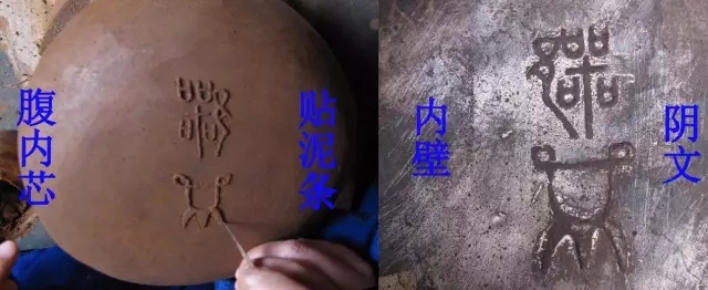 泥芯的表面需進行修整,如想在器物內(nèi)壁留下銘文,這時候就可以在腹內(nèi)芯上貼泥條了。